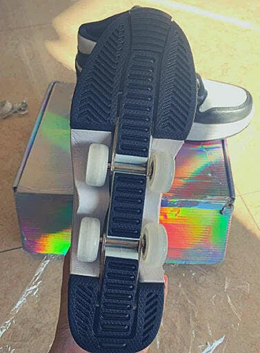 • Deformation Roller Skate : Skateboarding shoes sneakers 2 in 1! The sole has a pair of hidden wheels. When you want to skate, just turn the heel switch and open the wheel.