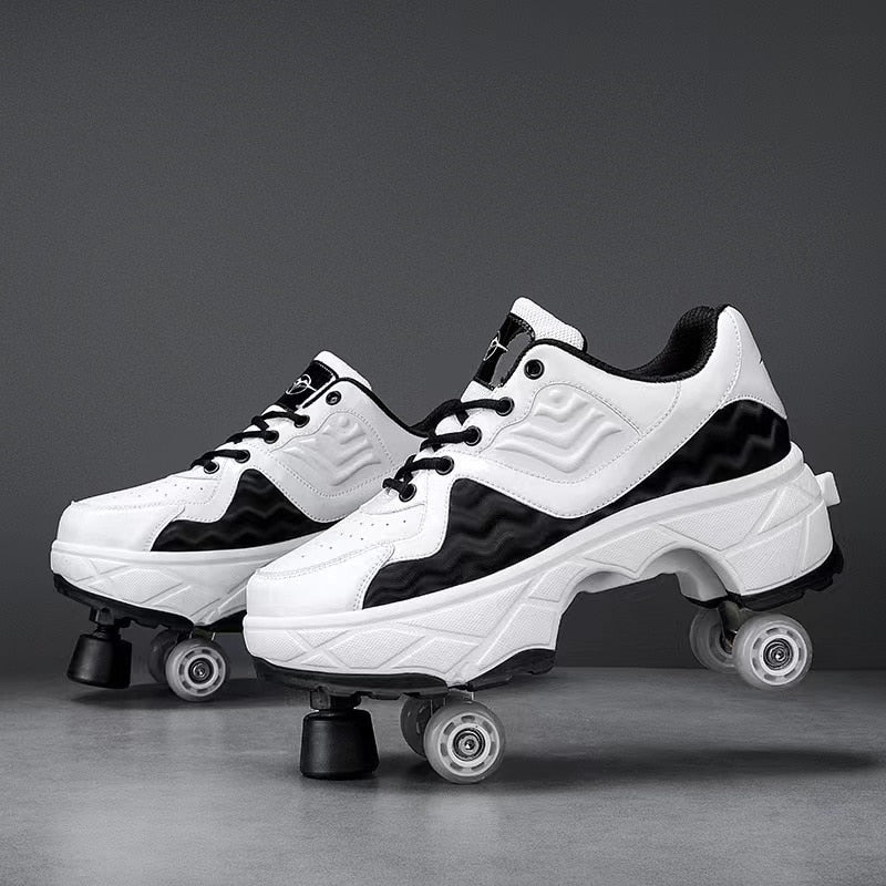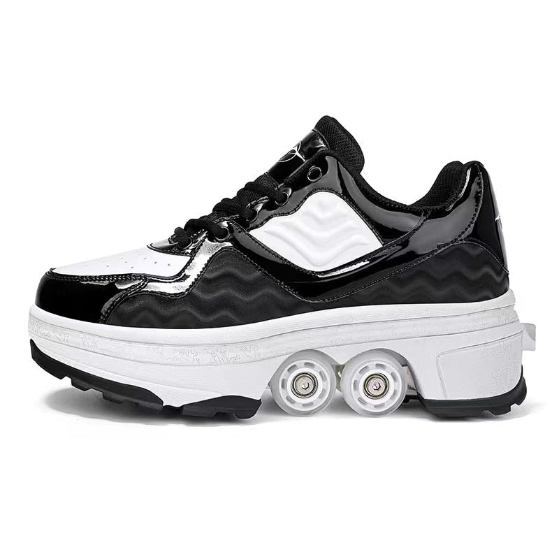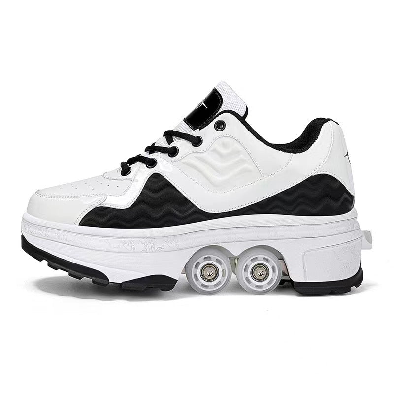 • Deformation Roller Skate: Skateboarding shoe sneakers 2 in 1! The sole has a pair of hidden wheels. When you want to skate, just turn the heel switch and open the wheel.